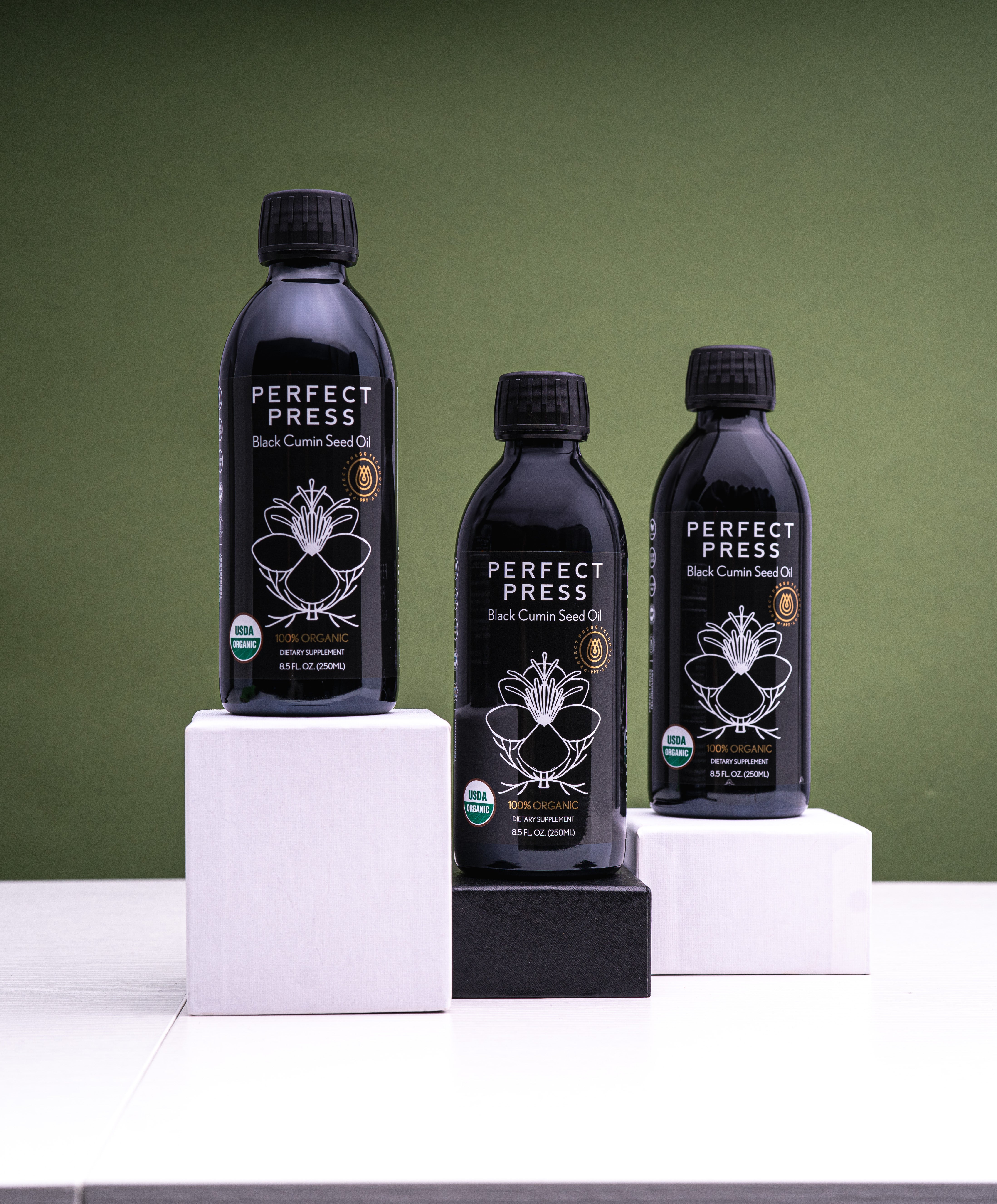 Each bottle of Perfect Press® Black cumin Oil contains the oil from thousands of organic cumin seeds sourced from India. Our unique and proprietary heat-free pressing process ensures there’s no damage to the nutritional properties. The finished product is stored in UV-protective Miron glass bottles to maintain quality over time, which means there’s zero damage and zero rancidity.