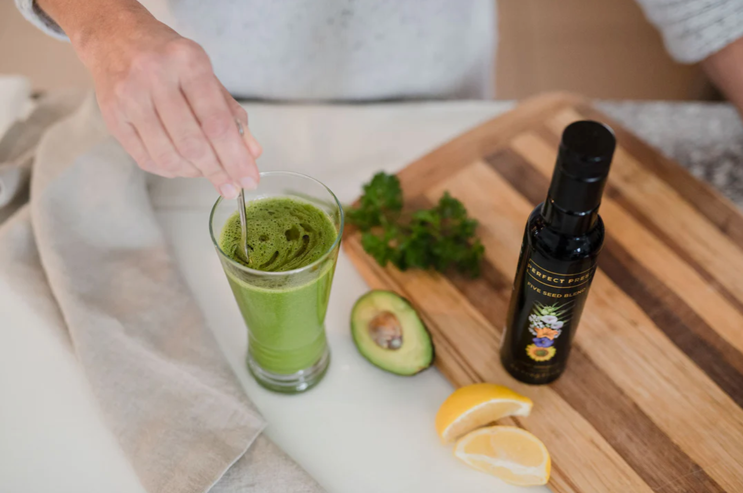 You can be sure that the seeds used to make Perfect Press® Five Seed Blend are the most nutrient-dense seeds on the planet. And they’re all brought to you in one convenient oil. One oil that contains the nutrients of thousands of seeds. One oil that makes getting the nutritional building blocks you need to be healthy and stay healthy longer, easy.