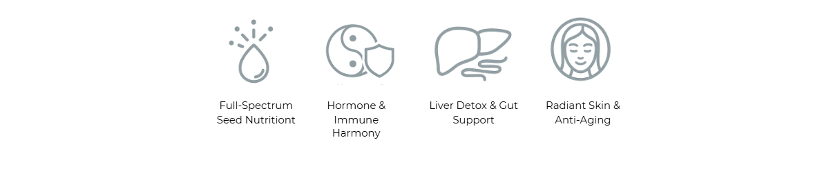 It supports hormone balance, immune resilience, gentle liver detox, healthy skin, digestive harmony, and long-term vitality. Think of it as a daily foundational oil that feeds and fortifies every system in your body.