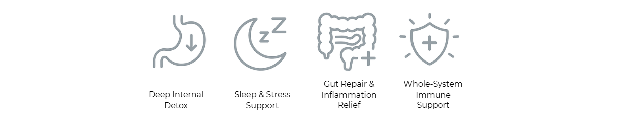 Reinforces immune defenses by clearing toxic load, calming inflammation, and supporting your body’s natural ability to identify and eliminate threats.